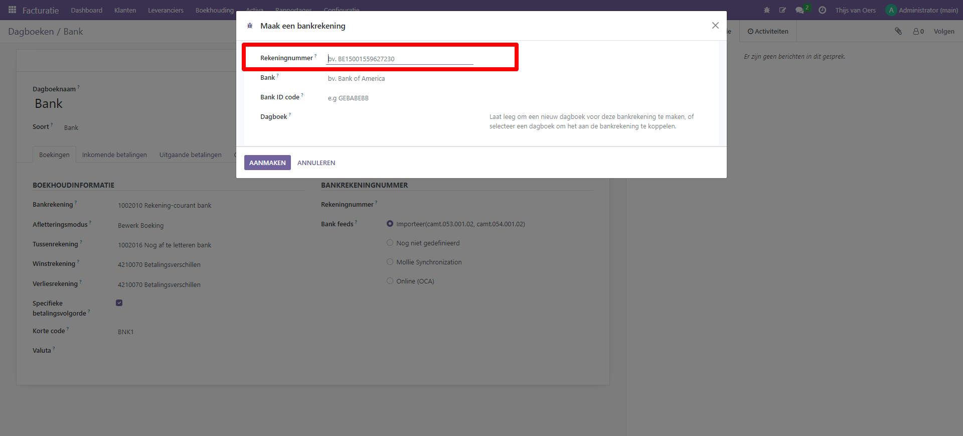2. Het bijbehorende Bankjournaal wordt automatisch aangemaakt
