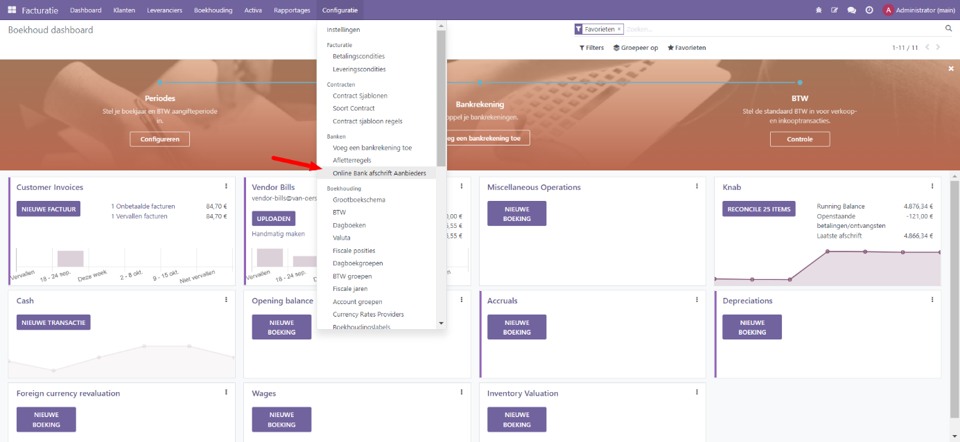 3. Ga naar het menu ‘Online Bank afschrift aanbieders’