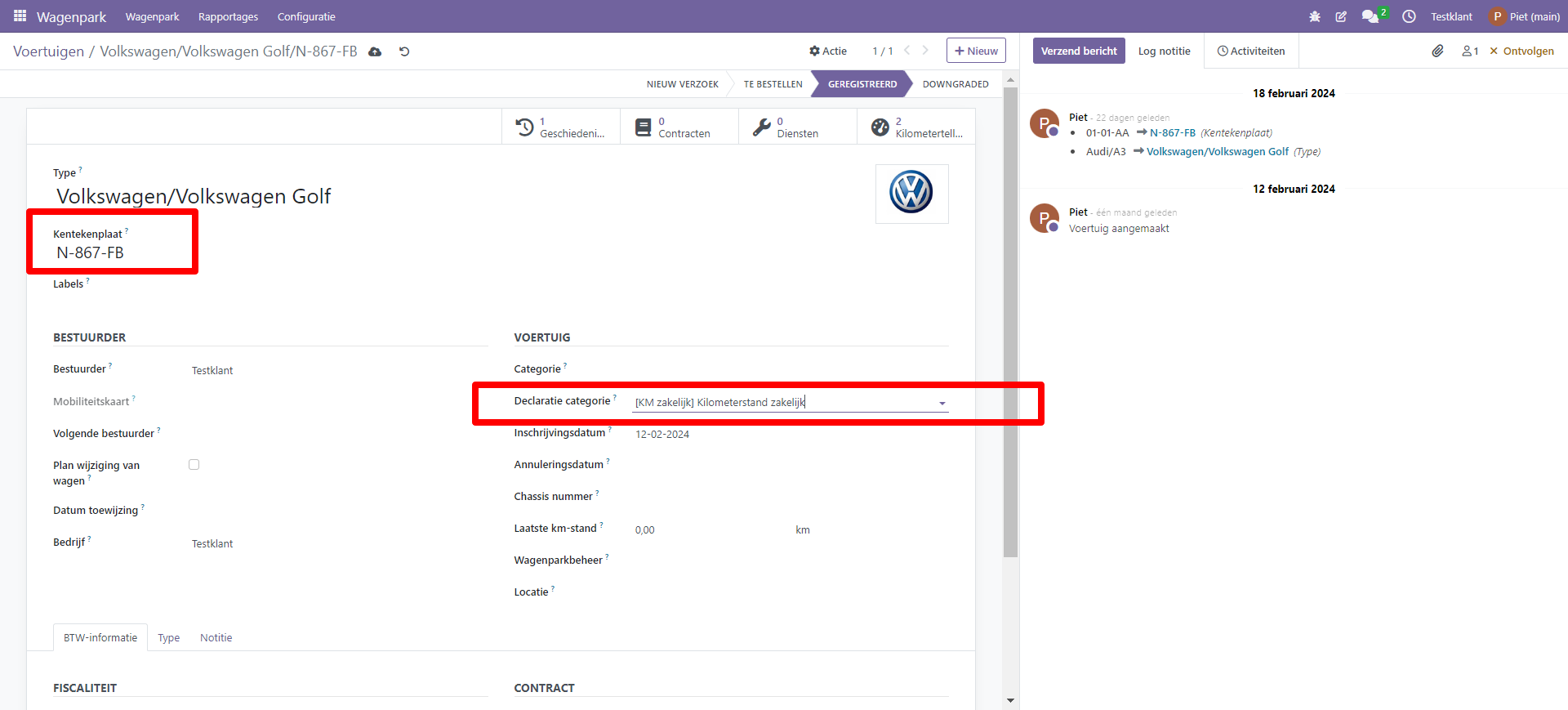 We hebben nieuwe velden toegevoegd aan het menu ‘Kilometerregistratie’.