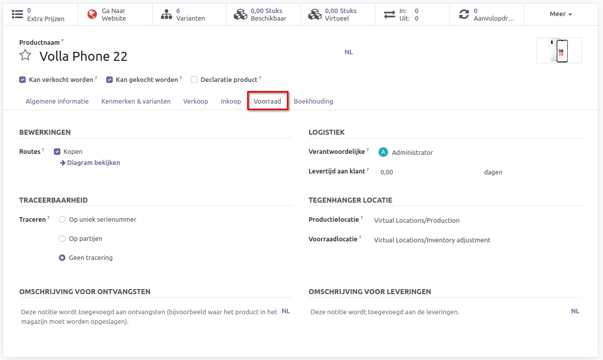 Voorraad Product > een product waarvan je de voorraad beheerd