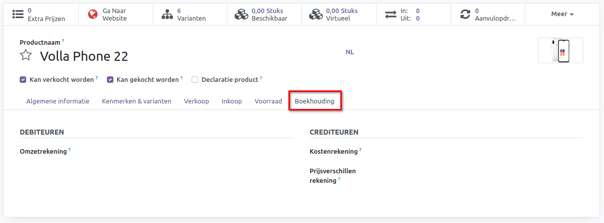 Dit veld wordt gebruikt om de voorraad te waarderen en om marges op verkooporders te berekenen. De voorraadwaardering stel je in op productcategorie. Bij gemiddelde kostprijs en FIFO wordt de kostprijs automatisch berekend.